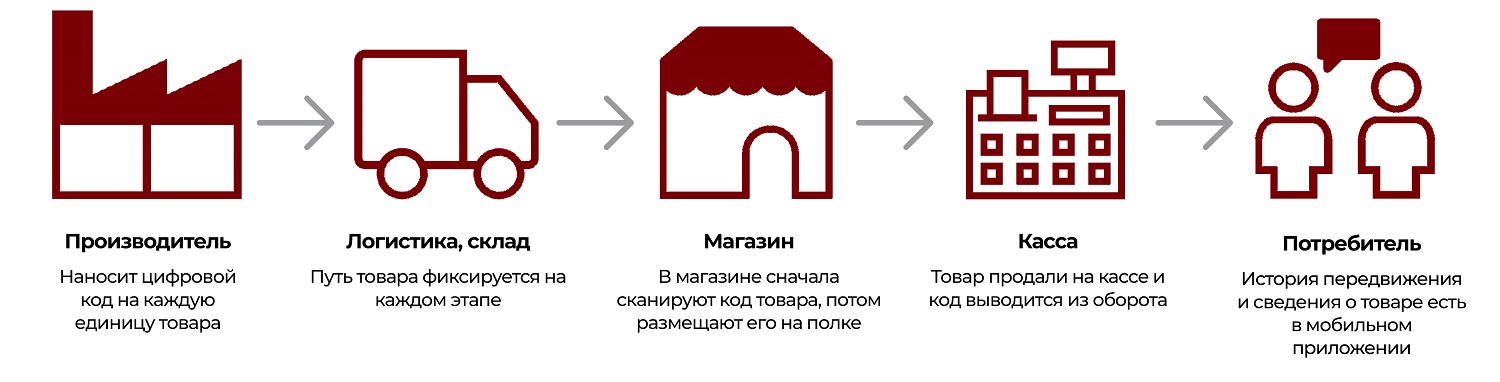 «Честный знак»– это не только система для маркировки и отслеживания товара на уровне предприятий, но и инструмент общественного контроля. Одноименное приложение уже можно скачать App Store и Google Playи с помощью смартфона считать код маркировки с конкретного товара и получить всю необходимую информацию по нему. В случае обнаружения контрафакта информация передается контролирующим органам.